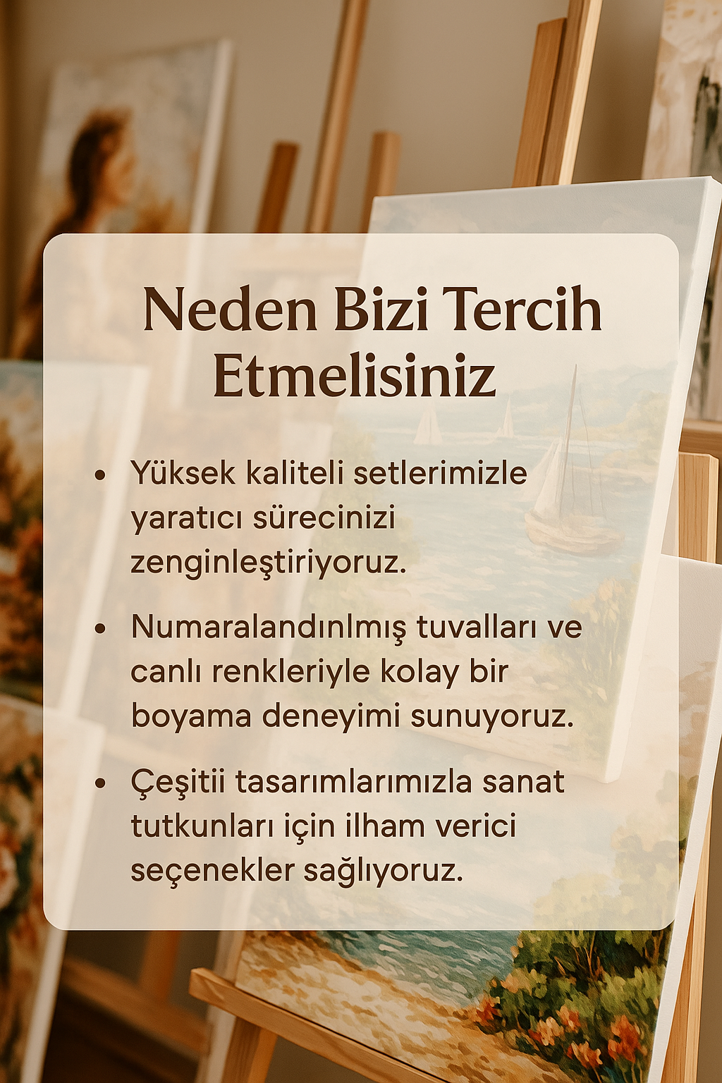 Amacımız; modern, şık ve herkesin kolaylıkla tamamlayabileceği tasarımları uygun fiyatlarla sizlerle buluşturarak boyama sürecini hem rahatlatıcı hem de ilham verici bir hobiye dönüştürmektir.