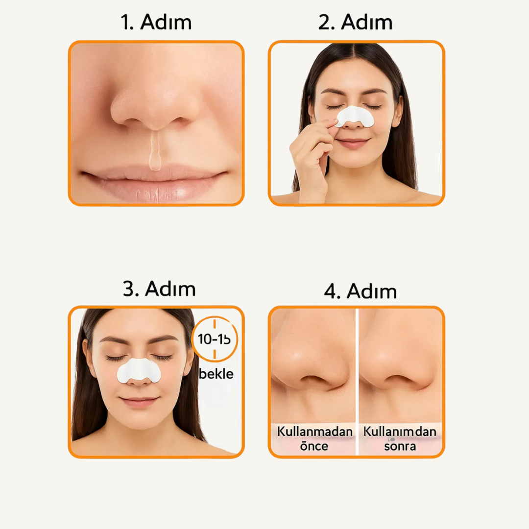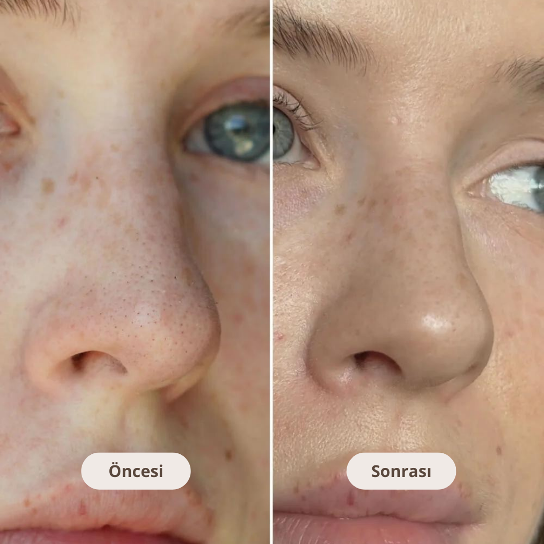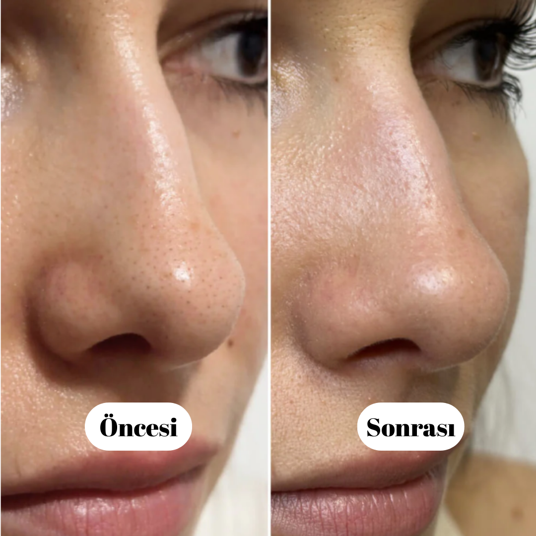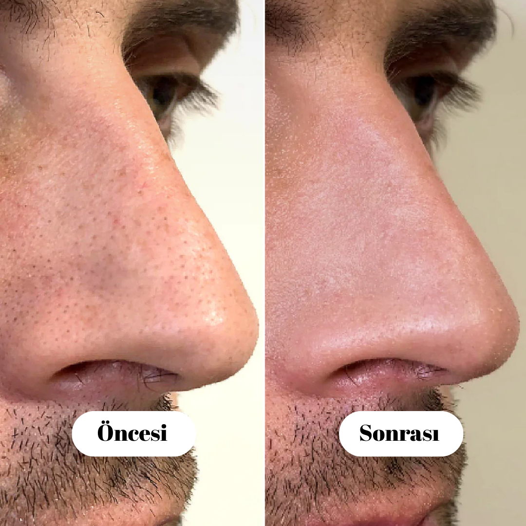 Burun üzerindeki siyah noktalar ve tıkanmış gözenekler, uygulama sonrasında gözle görülür şekilde azalır.