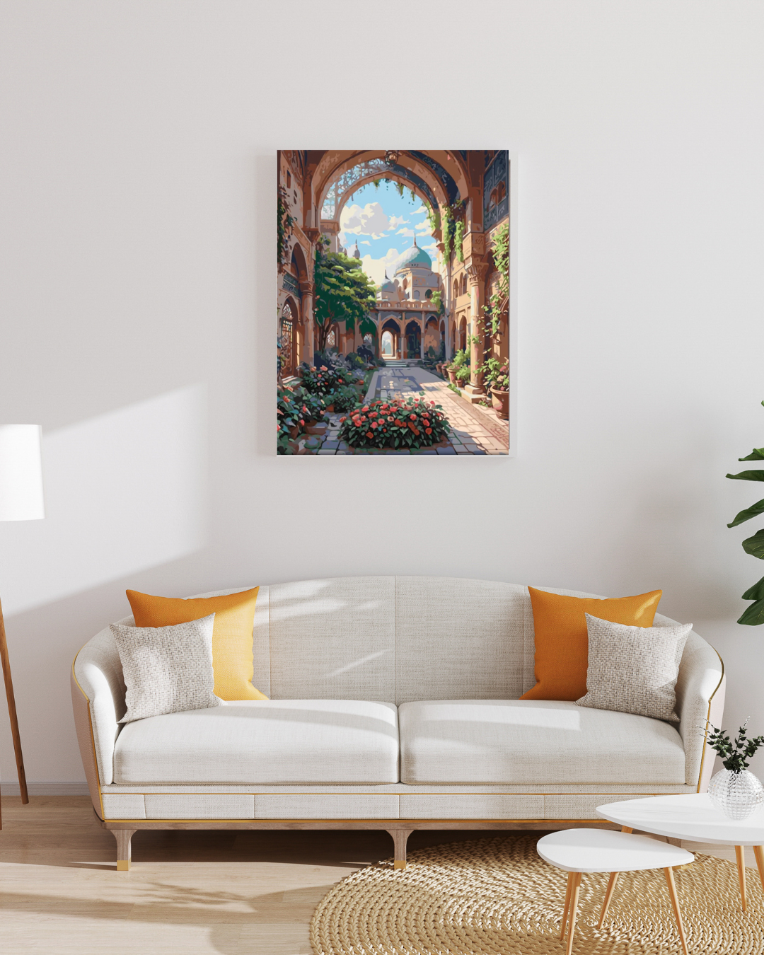 Tuval: 40x50 cm pamuklu kumaşa baskılanmış vektörel desen, dayanıklı ahşap çerçeveye gerdirilmiştir.